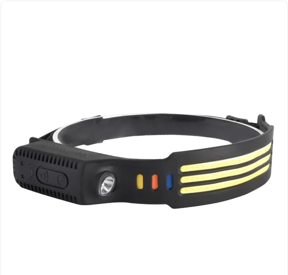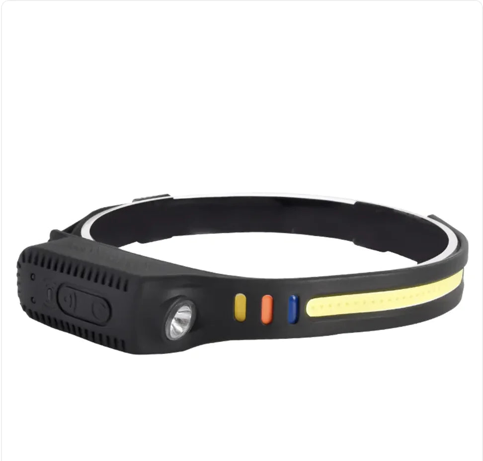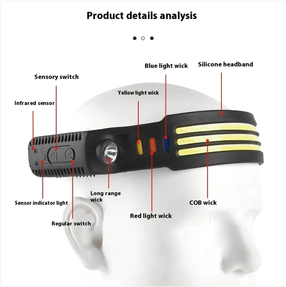 Illuminate your adventures with this Rechargeable Dual-Light Silicone Sensor Headlamp. Designed for outdoor enthusiasts, this lightweight and durable headlamp offers versatile lighting options with nine adjustable brightness levels and high-power COB LED technology. Perfect for activities like hiking, cycling, and camping, its life-grade waterproof construction and long-lasting battery ensure reliable performance in various conditions.